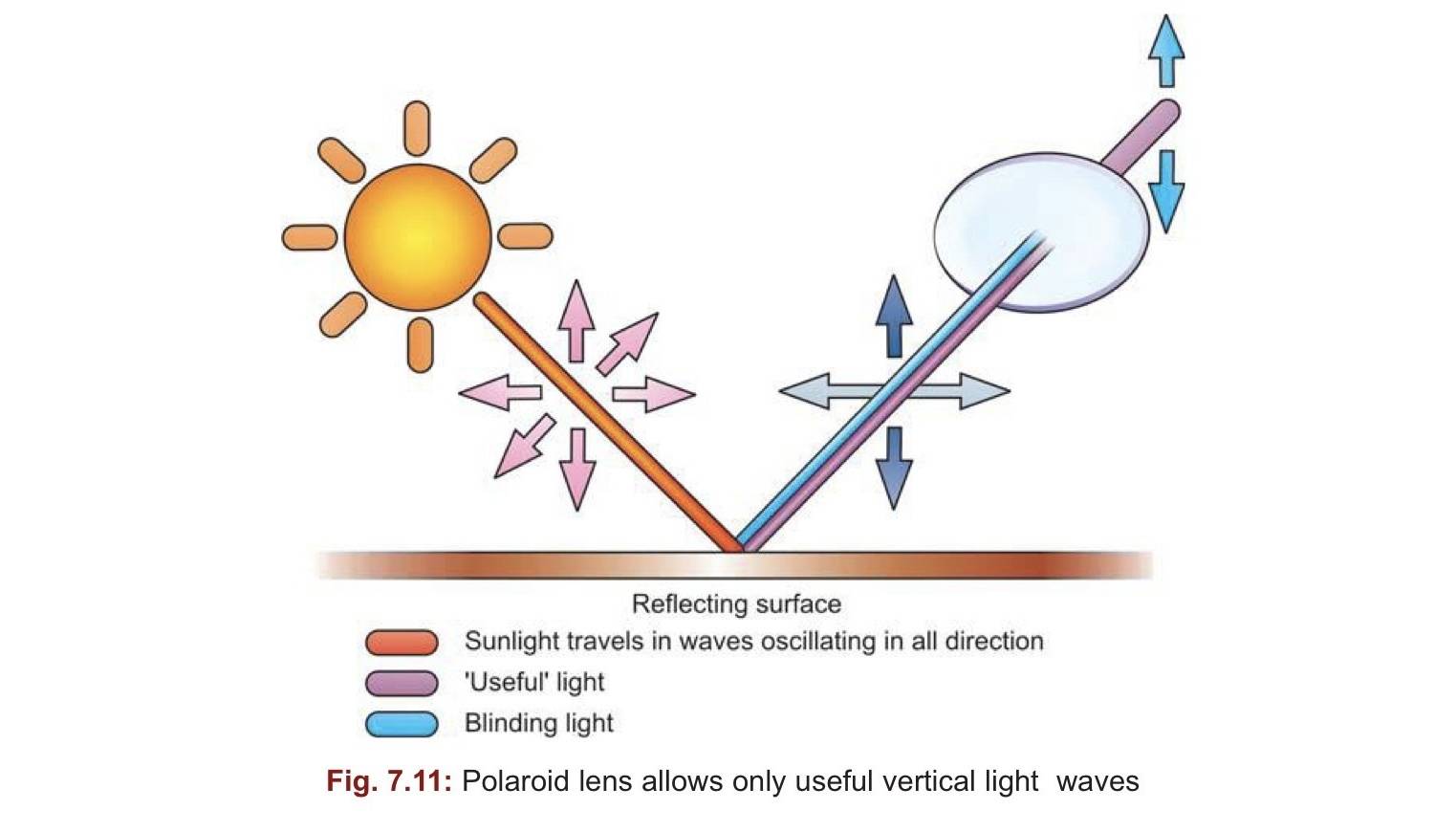 Polarize จะจำกัดคลื่นแสงให้อยู่ในทิศทางเดียว จะ block แสงในแนวนอน ซึ่งเป็นสาเหตุที่ทำให้เกิด Glare ในขณะที่ปล่อยให้คลื่นแสงในแนวตั้ง สามารถส่งผ่านไปได้