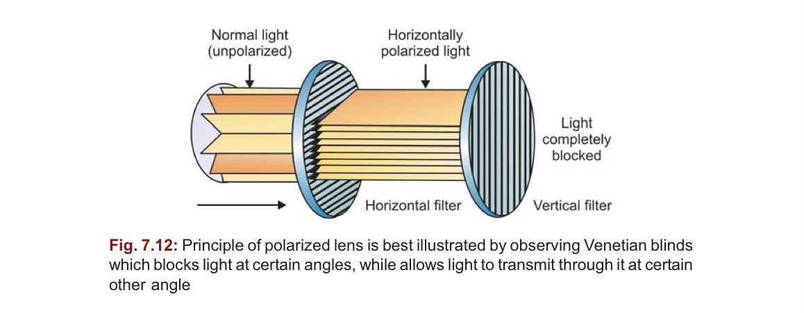 นั่นคือ แสงในระนาบแนวตั้งจะสามารถผ่านได้ แต่แสงในระนาบแนวนอนจะไม่สามารถผ่านได้ ซึ่งเป็นแสงที่ทำให้เกิดการฟุ้งกระจาย Polarize filter จะช่วยแก้ไขปัญหาเหล่านี้ ทำให้มองภาพได้คมชัดและสบายตามากขึ้น