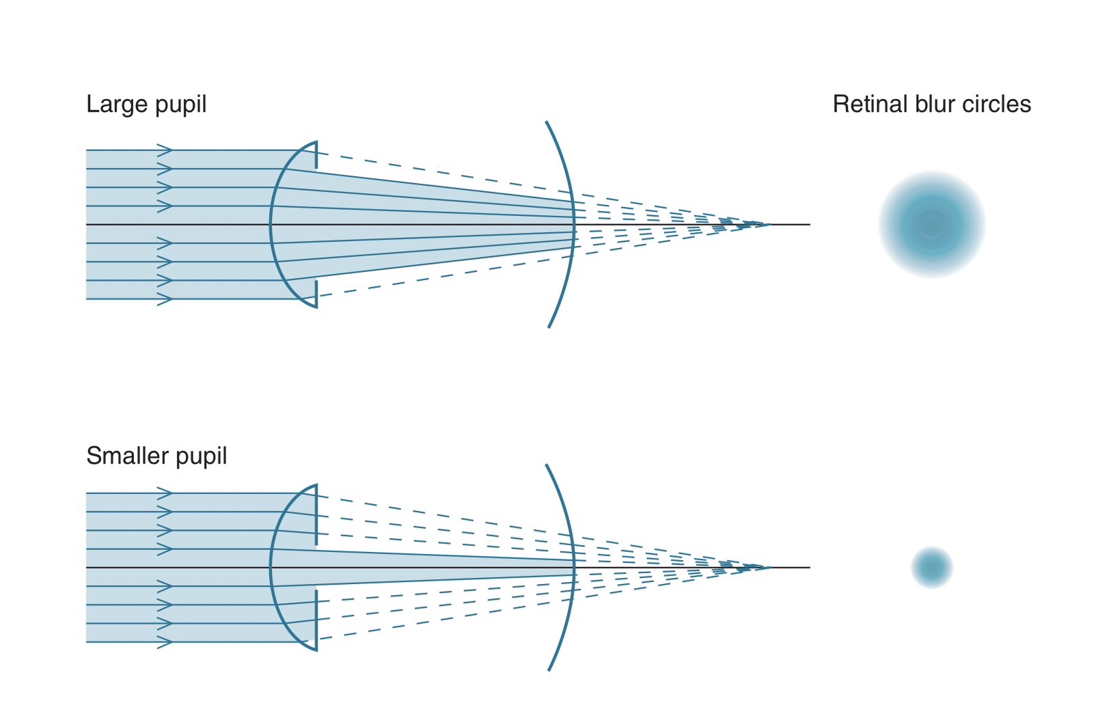 ซึ่งในกระบวนการนี้ก็ยังคงมีส่วนที่เป็นผลดีอยู่บ้างนั่นก็คือ เมื่อขนาดของ Pupil เล็กลง ทำให้การเกิด Blur Circle บริเวณจอตามีขนาดเล็กลง มีผลทำให้ Visual Acuity ของคนไข้ improve หรือการมองเห็นดีขึ้นเล็กน้อย เราจะเรียกการเกิดกระบวนการนี้ว่า Pinhole effect