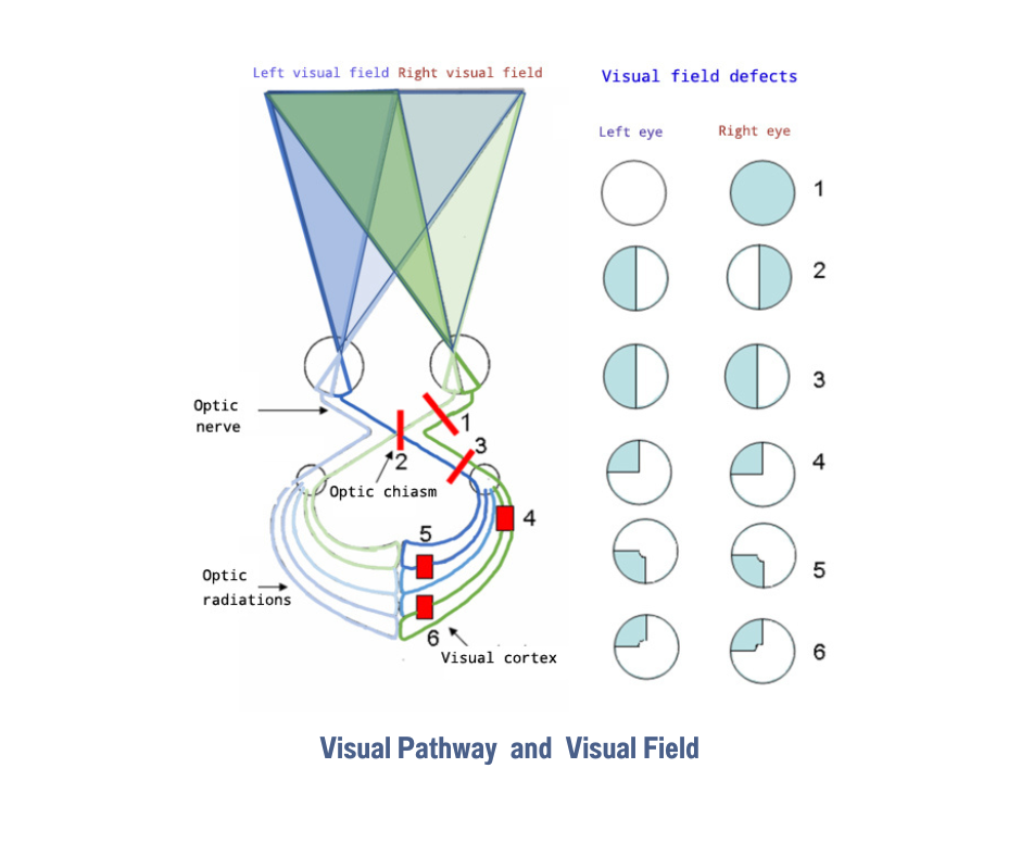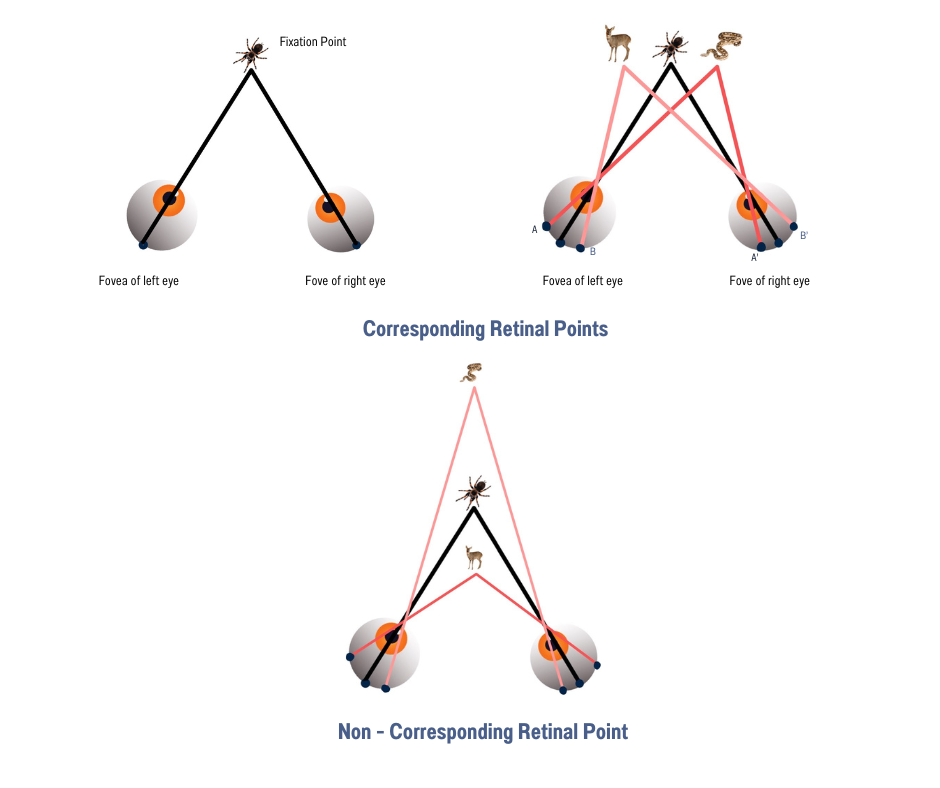 มนุษย์เรามีตา 2 ข้าง ซึ่งตาแต่ละข้างจะมองเห็นภาพที่ไม่เหมือนกัน เราสามารถทดสอบได้จากการปิดตาทีละข้าง แล้วลองมองไปที่วัตถุด้านหน้าดู จะพบว่าตาแต่ละข้างมองเห็นภาพไม่เหมือนกัน แต่จะมีบางส่วนที่มองเห็นภาพออกมาได้เหมือนกัน เมื่อตาทั้ง 2 ข้าง fixate หรือมองไปที่จุดใดจุดหนึ่งที่อยู่ตรงหน้า visual field หรือลานสายตาของตาทั้งสองข้าง จะมีส่วนที่ Overlab มองเห็นภาพที่เหมือนกันอยู่ ยกเว้นทางด้าน Temperal หรือทางด้านหูของตาแต่ข้าง