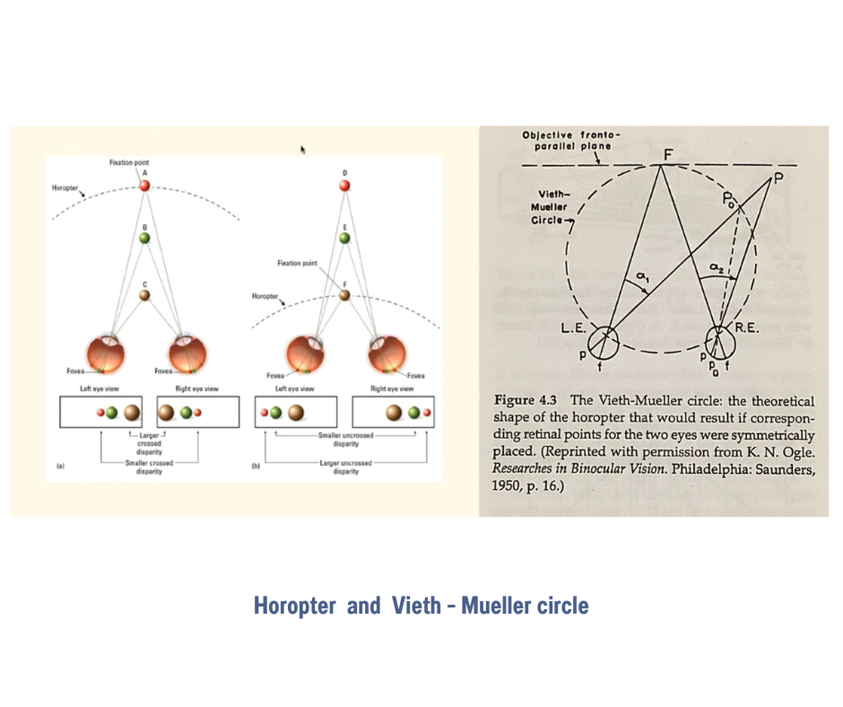 Ogle ( 1950 ) บอกไว้ว่าถ้า จุด Corresponding Retinal Points จากทั้ง 2 ตา ถูกวางในตำแหน่งที่ Symmetrically รูปร่างของ Horopter จะเป็นวงกลม หรือเรียกว่า Vieth - Mueller circle ซึ่งผ่านจุด Fixation Point และจุดกึ่งกลางรูม่านตาของตาทั้ง 2 ข้าง