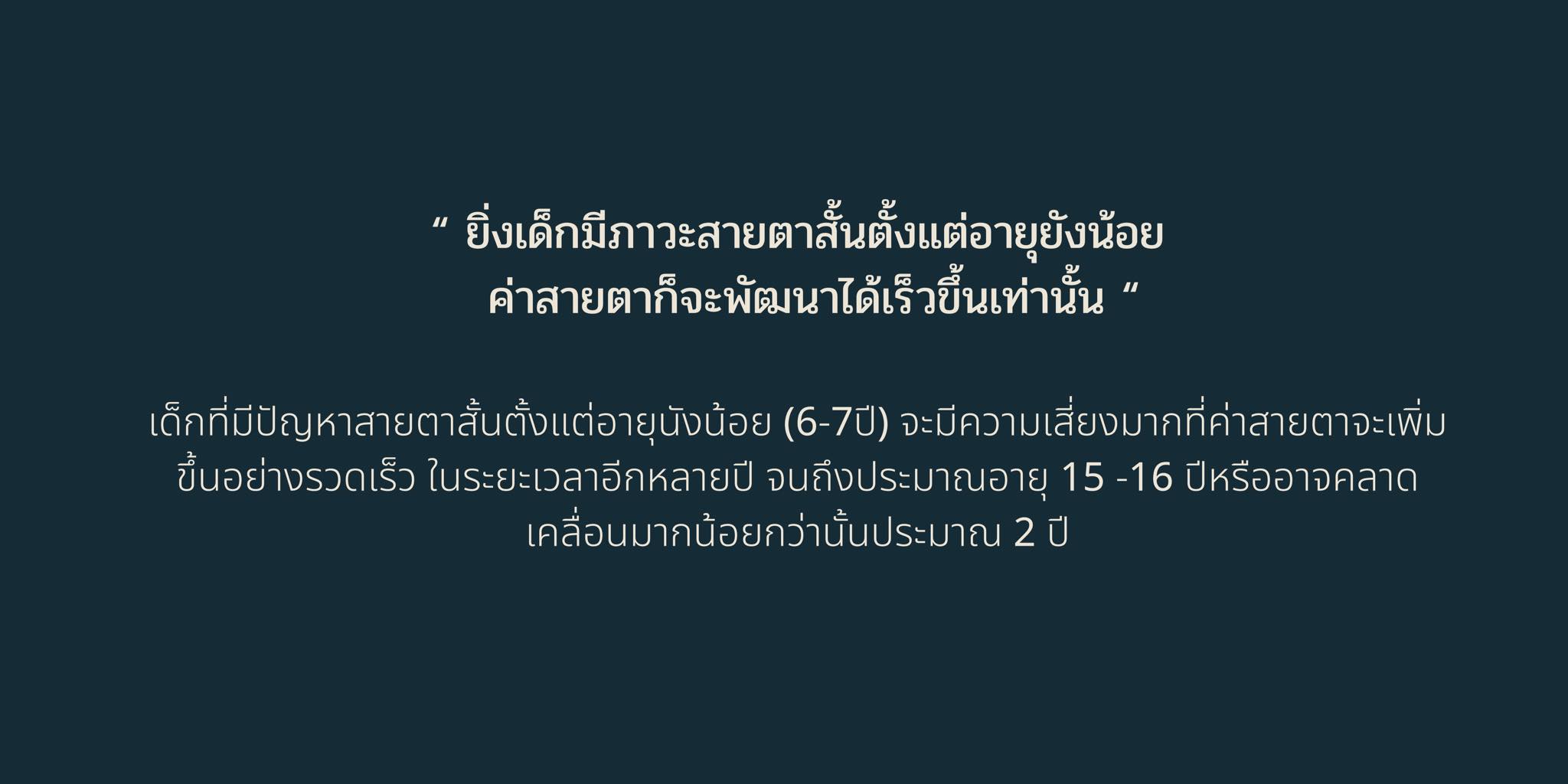 " ยิ่งเด็กมีภาวะสายตาสั้นเร็วเท่าไหร่ ค่าสายตาก็จะพัฒนาได้เร็วขึ้นเท่านั้น "