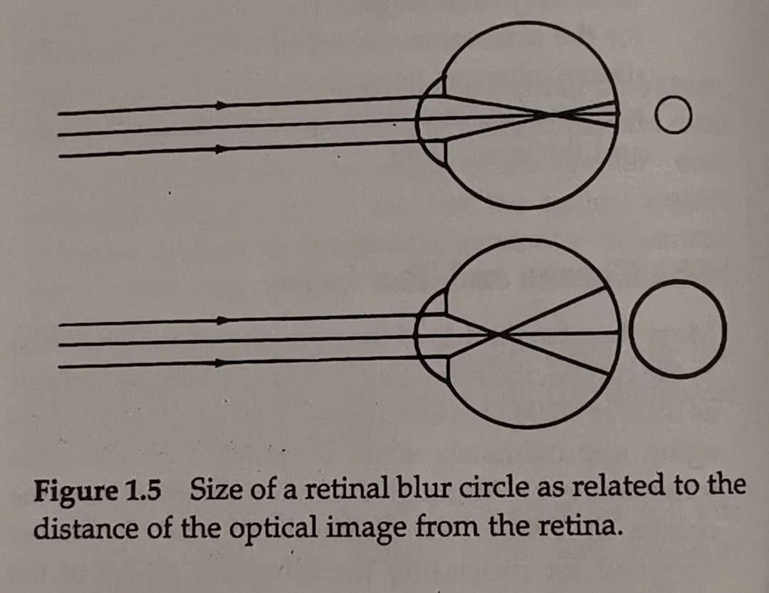 แต่ถ้า Optical image ของวัตถุ โฟกัสไม่ตรงกับจอตา จะเกิดเป็นภาพที่ไม่คมชัด Retinal image จะเกิดเป็น Blur Circle ขึ้นมา