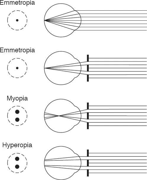 ในคนที่สายตาปกติ Emmetropic แสงจะไปโฟกัสที่บริเวณจอตาเพียงจุดเดียว และเห็นเป็นภาพภาพเดียวเท่านั้น