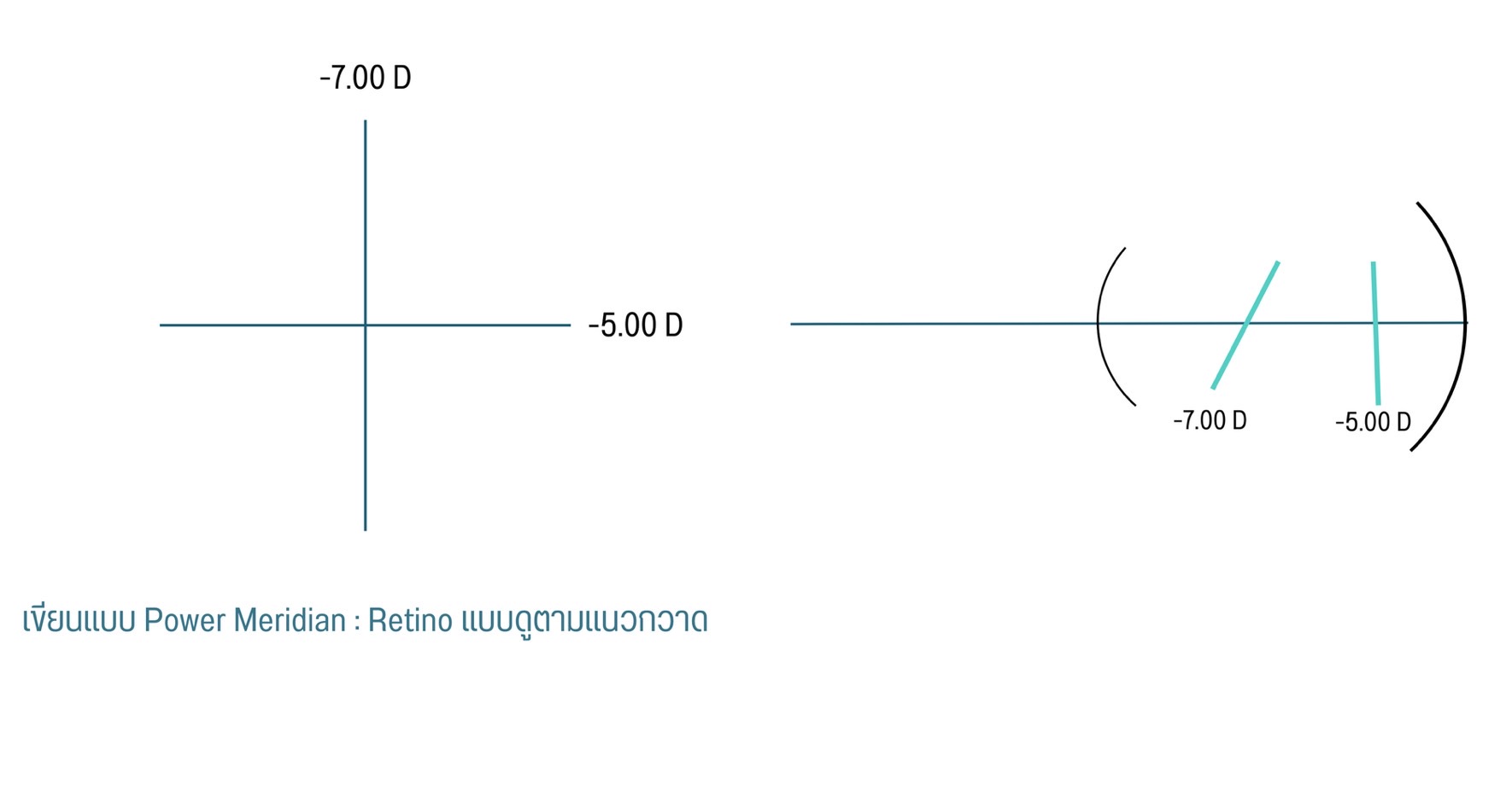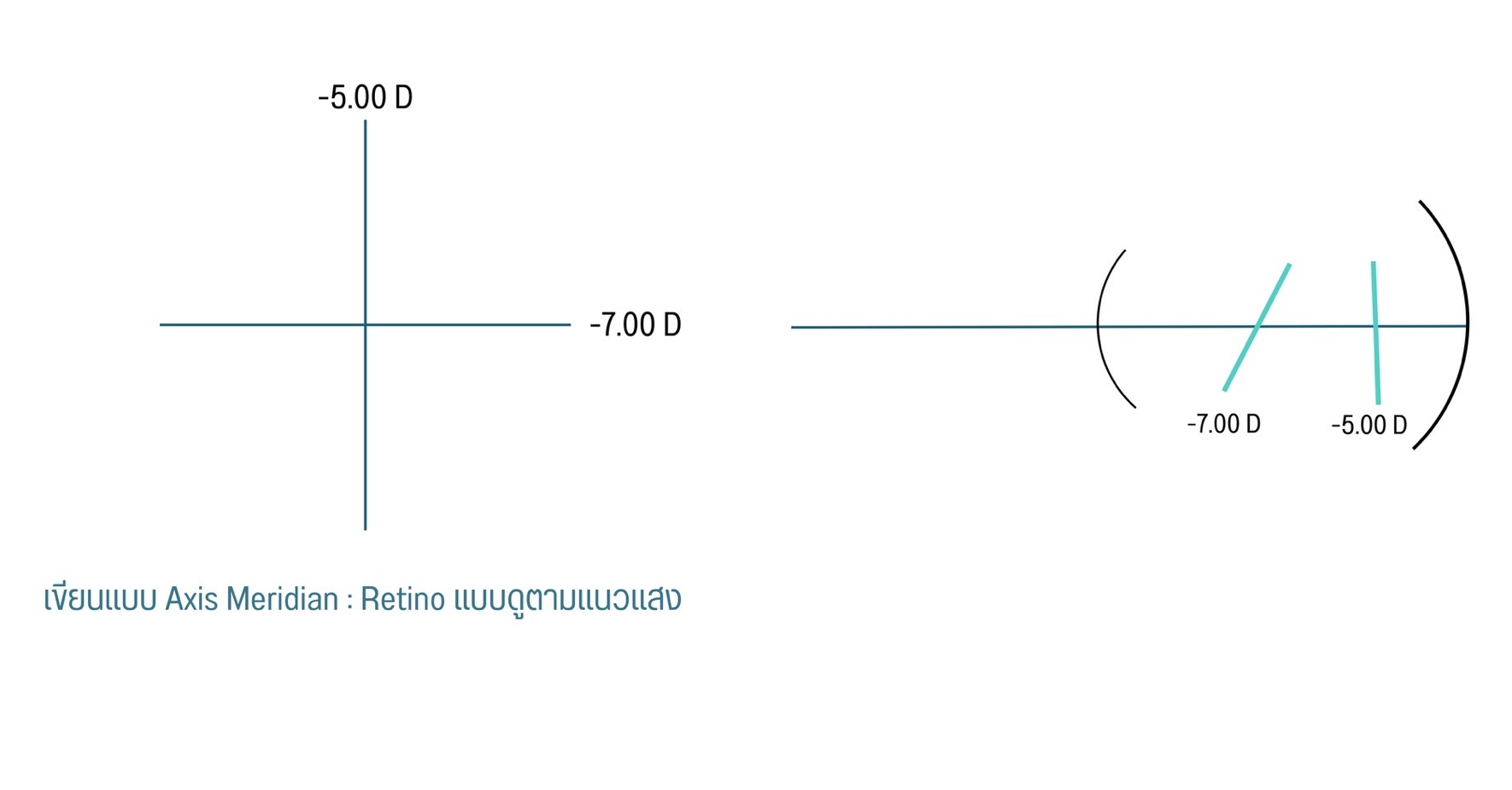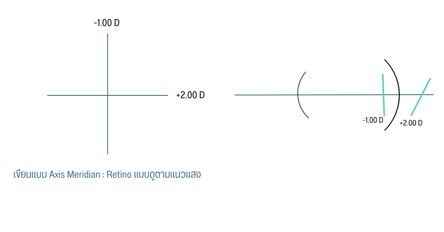 Axis meridian = องศาที่ใช้ดูใน Lensometer เป็นองศาของ Focal line : เรติโนแบบดูแนวแสง และใช้ Sphere lens neutral ทั้ง 2 แกน