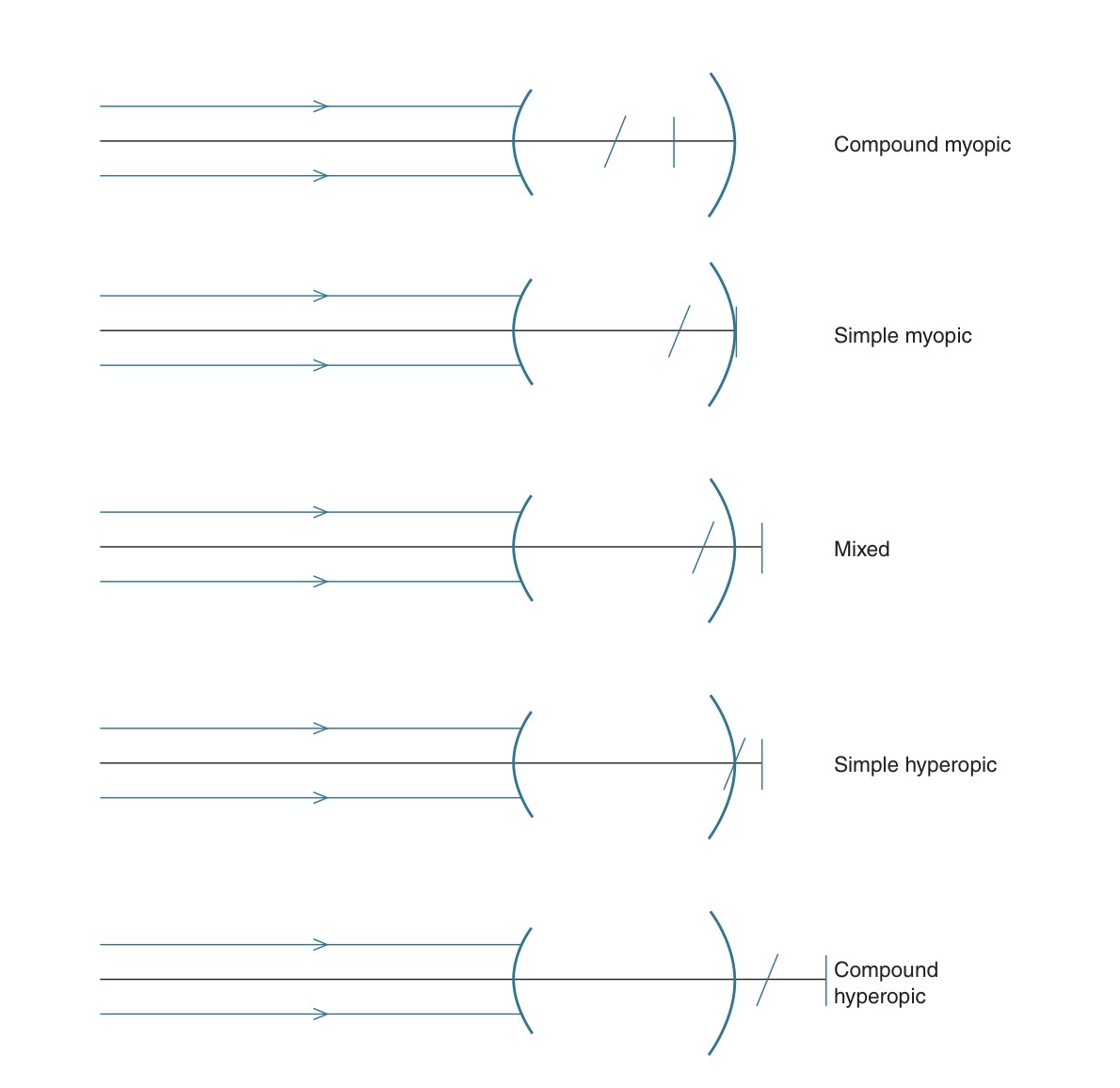 1. Compound Myopic Astigmatism ( CMA ) : Focal line ทั้งสองเส้นตกหน้าจอตา